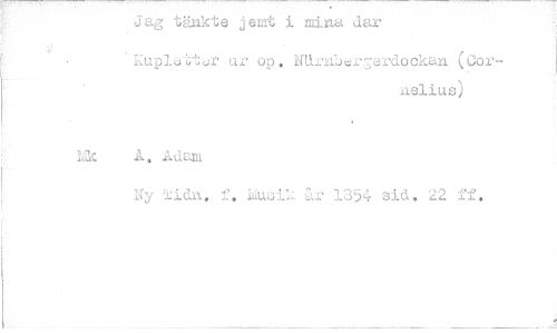 //// Jag tänkte jemt i mina dar //// L:uplettr ur op. NUrnber;erdockan (Jor- //// nelius) //// LacÄ. .4d24.ä. //// Ny lidn. f. år 1854 sid. 22 if. ////
