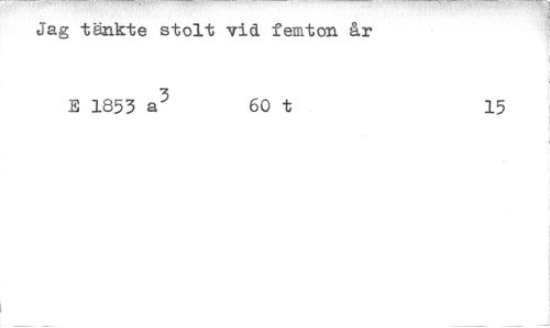 //// Jag tänkte stolt vid femton år //// E 1853 a3 60 t 15 ////