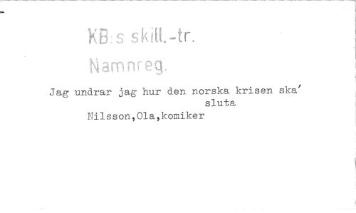 //// )(:s skilt.-tr. //// Namnreg. //// Jag undrar jag hur den norska krisen ska' //// sluta //// Nilsson,01a,komiker ////