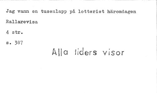 //// Jag vann en tusenlapp på lotteriet häromdagen Rallarevisa //// 4 str. //// s. 387 //// Alla ilders visor ////