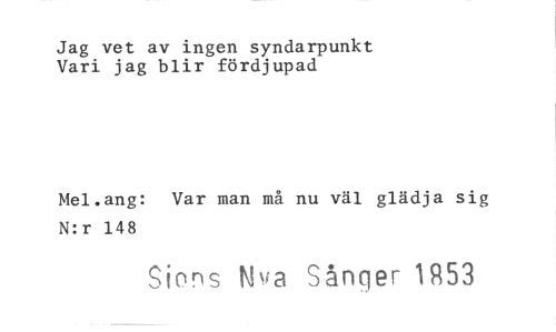 //// Jag vet av ingen syndarpunkt Vari jag blir fördjupad //// Mel.ang: Var man må nu väl glädja sig N:r 148 //// Gions Nsia Sånger 1853 ////