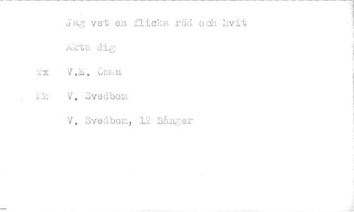 //// jag vet en flicka röd och hvit i,kta dig //// • T. CrAan //// ^ V. Svedboill //// V. Svedborn, 12 :-.3årer ////