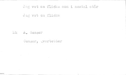 //// Jag vet en flicka som i mantal står Jag vet en flicka //// pik A. Genser //// Genser, ..-vartetter ////
