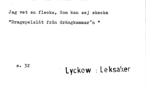 //// Jag vet en flecka, Som kan sej skecka "Dragspelslåt från drängkammar'n //// 8. 32 lyckow : leksaker ////
