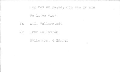 //// Jag vet en gosse, och han är min En liten visa //// 21 Gellerstedt //// 12K Ivar hallström //// lialiström, 4 Singer ////