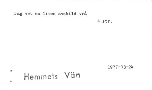 //// Jag vet en liten avskild vrå //// str. //// 1977-03-24 //// Hemmets Vän ////