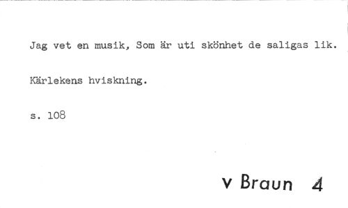 //// Jag vet en musik, Som är uti skönhet de saligas lik. Kärlekens teviskning. //// s. 108 //// v Braun 4 ////