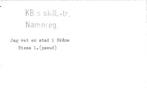 //// KB:s ski[1.-tr. //// Namnreq //// Jag vet en stad i Skåne Nisse L.(pseud) ////