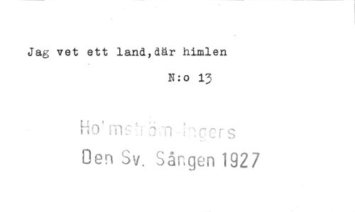 //// Jag vet ett land,där himlen //// N:o 13 //// H 0 ‘.7 nccrs //// Den Sv. Sången 192 7 ////