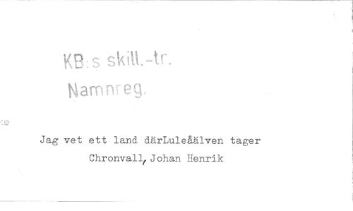 //// s //// harnrreg, //// Jag vet ett land därLuleåälven tager ChronvallfJohan Henrik ////