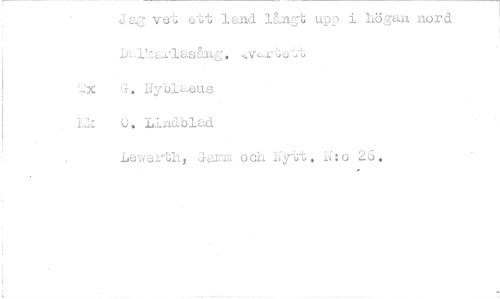 //// jag vet ett land långt upp i högan nord -1,1kalasång. .vartett //// fLX Cr. Nyblaeus //// -bl 0, Lindblad //// Lewerth, Garm och Nytt. i:o 26. ////