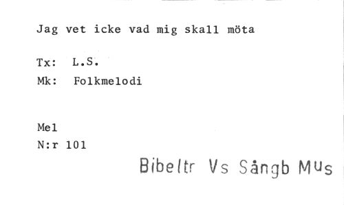 //// Jag vet icke vad mig skall möta //// Tx: L.S. //// Mk: Folkmelodi //// Mel //// N:r 101 //// Bibeltr Vs Sångb Mus ////