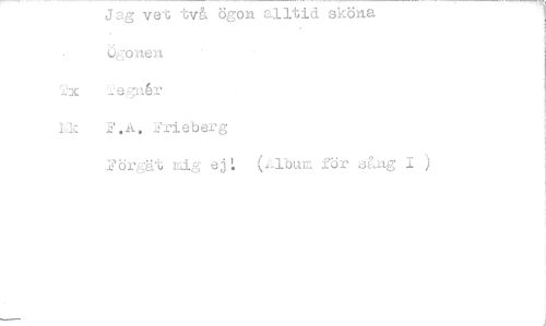 //// Jag ve 'G två ögon alltid sköna oien //// Lk F.A. Frieberg //// Förgät mig ej: (1,1bum för sLng I ) ////