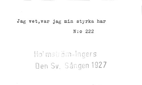 //// Jag vet,var jag min styrka har //// N: o 222 //// k //// Ben Sv. Sången 1927 ////