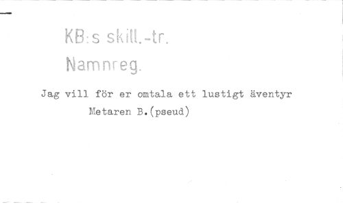 //// KE3:s skitt.-tr. //// Namnreg. //// Jag vill för er omtala ett lustigt äventyr Metaren B.(pseud) ////