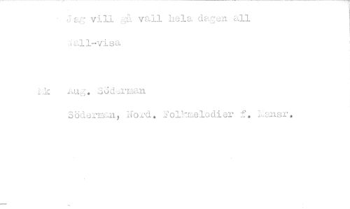 //// Ja,z vill gå vall hela dagen all //// ist>uödJrman //// Söderman, No2d. 2olkmelodier f. ,ausr. ////
