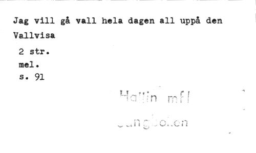 //// Jag vill gå vall hela dagen all uppå den Vallvisa //// 2 str. mel. //// s. 91 //// C //// i ////
