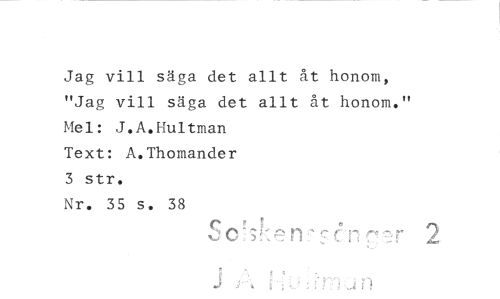 //// Jag vill säga det allt åt honom, "Jag vill säga det allt åt honom." alel: J.A.Hultman //// Text: A.Thomander //// 3 str. //// Nr. 35 s. 38 //// S 0 r-3,-.11P C 17 //// 1::`. r //// 3 ////
