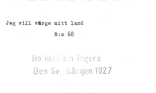 //// Jeg vill värge mitt land //// N: o 68 //// k to riv7 .7t1-Irtger s //// Oen Sv. bangen 1927 ////