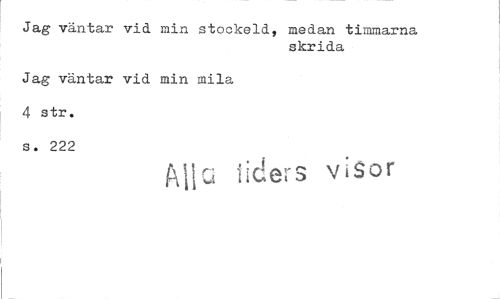 //// Jag väntar vid min stockeld, medan timmarna //// skrida //// Jag väntar vid min mila //// 4 str. //// s. 222 //// iid&s visor ////