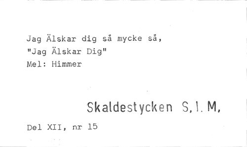 //// Jag Älskar dig så mycke så, "Jag Älskar Dig" //// Mel: Himmer //// Skaldestycken S,1. M, //// Del XII, nr 15 ////