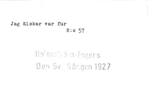 //// Jag älskar var fur //// : o 57 //// C't r S //// Pen Svf, Sången 1927 ////