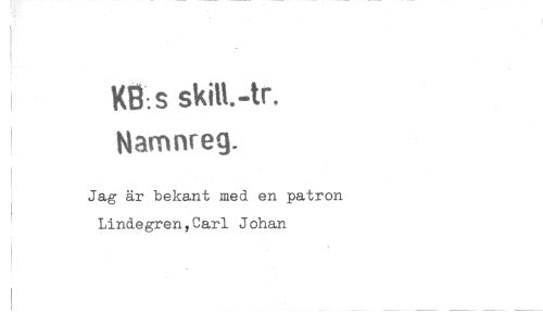 //// KB: s skin. -tr. //// Namnreg. //// Jag är bekant med en patron Lindegren,Carl Johan ////