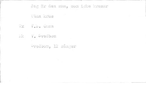 //// Jag är den man som icke Icrusar U>i;an krus //// '23c 02.n //// ik V. 6vedbom uvedbom, 12 sån.:;er ////