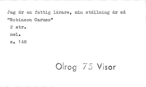 //// Jag är en fattig lärare, min ställning är så "Robinson Caruso" //// 2 str. //// mel. //// s. 148 //// Oirog , W Visor ////