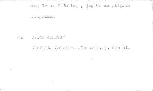 //// Jag är en främling , jag är an pilgrim PilgriLen //// i-k Oscar Alinfelt //// Ahnfelt, Andeliga stiger H. N:o 51, ////