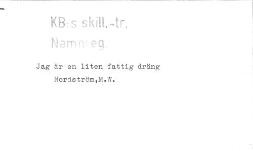 //// KB:s spill.-tr. //// N rn //// Jag är en liten fattig dräng Nordström,M.W. ////
