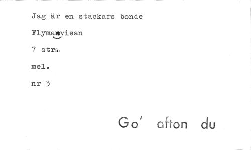 //// Jag är en stackars bonde Flymalevisan //// 7 atr-.. //// mel. //// nr 3 //// Go' afton du ////