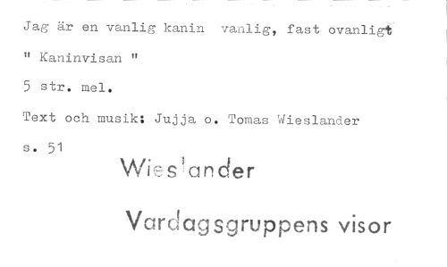 //// Jag är en vanlig kanin vanlig, fast ovanligt " Kaninvisan 11 //// 5 str. mel. //// Text och musik: Jujja o. Tomas Wieslander s. 51 //// Wies1ander //// Vardagsgruppens visor ////