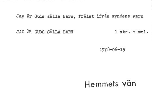 //// Jag är Guds sälla barn, frälst ifrån syndens garn JAG ÄR GUDS SÄLLA BARN 1 str. + mel. //// 1978-06-15 //// Hemmets vän ////