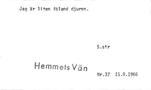 //// Jag är liten ibland djuren. //// 5.str //// Hemmets Vän //// Nr.37 15.9.1966 ////