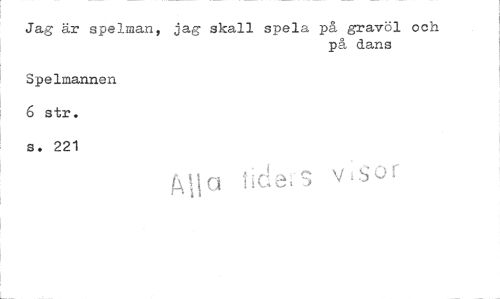 //// Jag är spelman, jag skall spela på gravöl och //// på dans //// Spelmannen //// ö str. //// s. 221 //// !Ala tide'S v isur ////