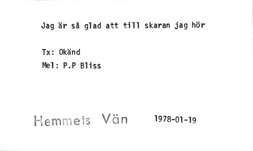 //// Jag är så glad att till skaran jag hör //// Tx: Okänd //// Mel: P.P Bliss //// Hemmets Vän 1978-01-19 ////