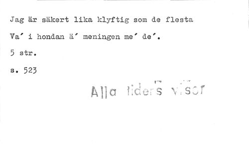 //// Jag är säkert lika klyftig som de flesta Va' i hondan ä' meningen me' de'. //// 5 str. //// s. 523 //// 411a S f ////