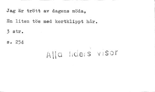 //// Jag är trött av dagens möda, //// En liten tös med kortklippt hår. 3 str. //// s. 254 //// Cei s v:sor ////
