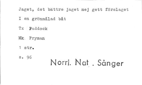 //// Jaget, det bättre. jaget mej gett förslaget I en grönmålad båt //// Tx Paddock //// Fryman //// 1 str. //// s. 96 Nord. Na Sånger ////
