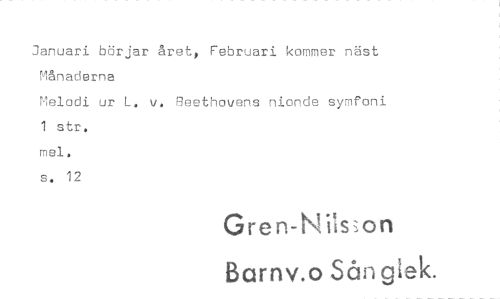 //// Januari börjar året, Februari kommer näst Månaderna //// Melodi ur L. v. Beethovens nionde symfoni 1 str. //// mel. //// s. 12 //// Gren-Nilson //// 13arnv.o Sån glek. ////