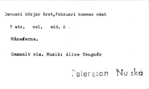 //// Januari börjar årettfebruari kommer näst //// 1 str. mel. sid. 6 //// Månaderna. //// Gammalt rim. Musik: Alice Tengn‘r //// u skå ////