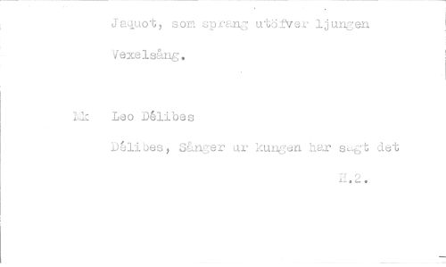 //// Jaquot, som sprang utö±Ver ljungen Vexelsång, //// L$z Leo Ålibes //// Dnibes, Sånger ur kungen har sagt det //// H.2. ////