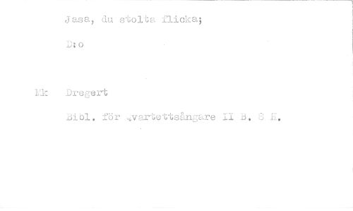 //// Jasa, du-stolta flicka; o //// LIk Dregert //// Bibl. för ,..vartettsångare II B. 8 K. ////