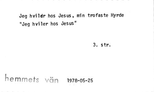 //// Jeg hvildr hos Jesus, min trofaste Hyrde "Jeg hviler hos Jesus" //// 3. str. //// !'Nemmets vän 1978-05-25 ////