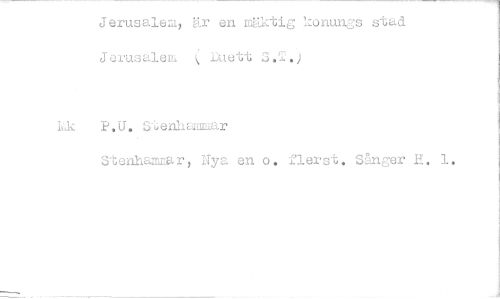 //// Jerusalem, är en mäktig konungs stad Jerusalem Duett $.T.) //// P.U. Si,enhvmmar //// Stenhanäer, Nya en o. flerst. Sånger H. 1. ////