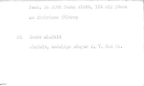//// Jesu, Du mitt fasta slott, låt mig gömma 1 Christ ens fältrop //// hk Oscar Alinfelt //// Ahnfelt, Andeliga sånger H. 7. N:o 92. ////