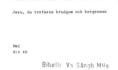 //// Jesu, du trofaste brudgum och borgesman //// Mel //// N:r 40 //// Bibel r Vs Sångb Mus ////