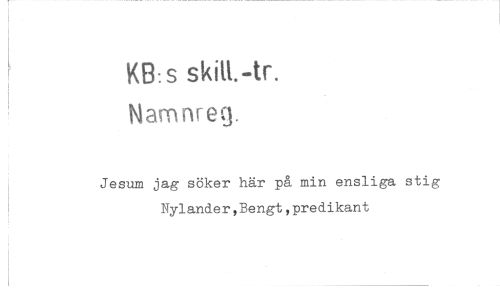 //// KB:s skitt.-tr. //// Namnreg. //// Jesum jag söker här på min ensliga stig //// Nylander,Bengt,predikant ////