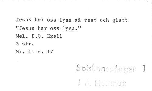//// Jesus ber oss lysa så rent och glatt "Jesus ber oss lysa." //// Mel. E.O. Exell //// 3 str. //// Nr. 14 s. 17 //// C - e ////